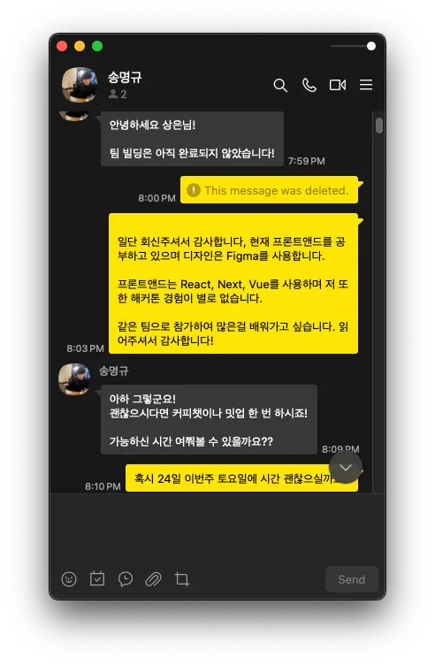 초등학생때부터 코딩을 시작하여 대구소프트웨어마이스터고등학교까지, 천천히 올라가며 성장하는 개발자 이상은 입니다. 일반적인 풀스택 개발자랑은 다르게 블록체인 등 새로운 기술을 망서리지 않고 성장하는 개발자 이상은 입니다.