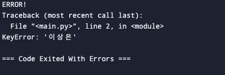이상은 이라는 키를 불러 올려고 하는데 오류가 발생했다.