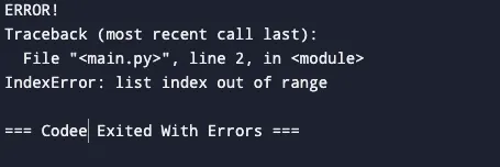 IndexError: 리스트의 범위를 벗어난 인덱스에 접근하려 하는 경우 발생하는 에러