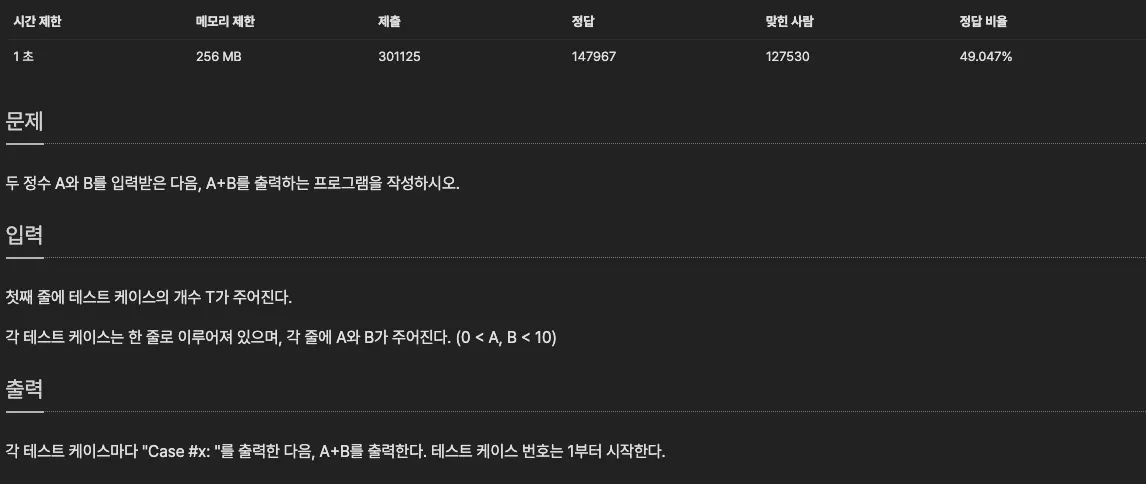 range 문을 사용하여 첫 번째로 입력받은 수 만큼 두 번째 a,b 의 더하기 반복
