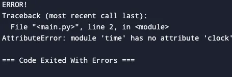 파이선 3.3이후로 삭제된 코드라서 저렇게 나온것이다. time.process_time()을 쓰면 정상적으로 기존 처럼 사용이 가능하다.