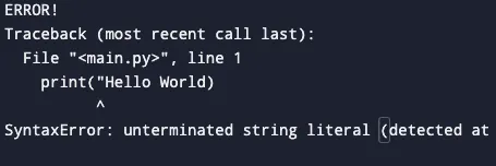 print("Hello World) 가 출력 되지 않은 이유는 마지막에 따움표를 작성하지 않아서다