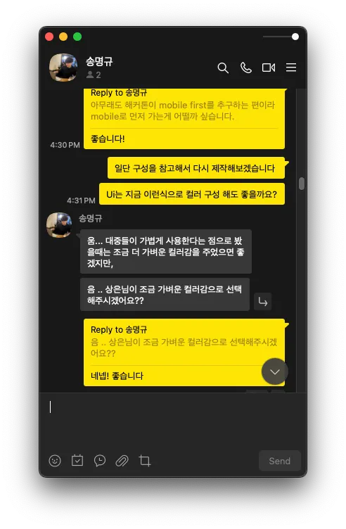현업에서 PM이 어떤식으로 설명해주고 어떤식으로 제작해야되는지 설명해주셔서 많은걸 배워갈수 있는 계기였다.