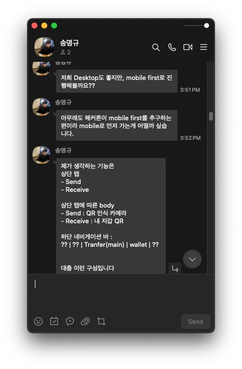 팀 빌딩 사이트에 있는 카카카오톡으로 무작정 나의 스택에 대해 설명해 드렸다.